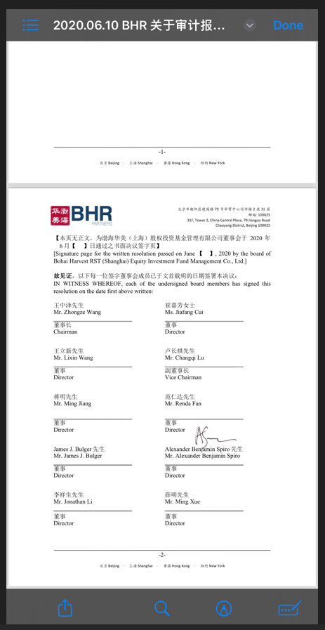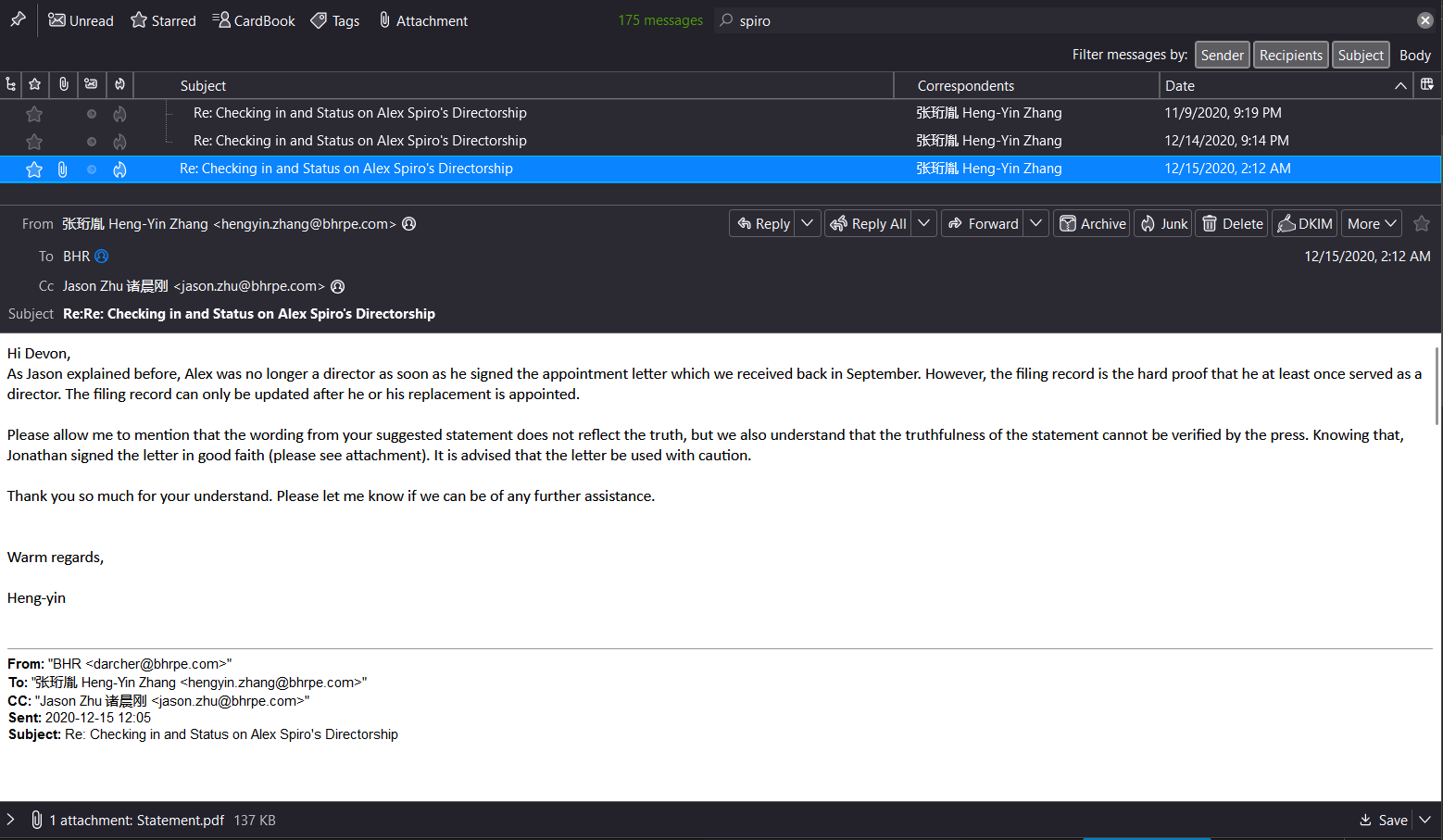 A word-for-word copy of the statement signed by CEO Jonathan Li on BHR letterhead was then forwarded by Zhang to Archer.