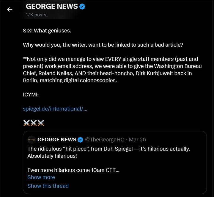These records enabled us to find more PII snippets online —from their very own Washington Bureau Chief, their Berlin based CEO, AND the six journalists that wrote the “hit-piece”! Geniuses!
