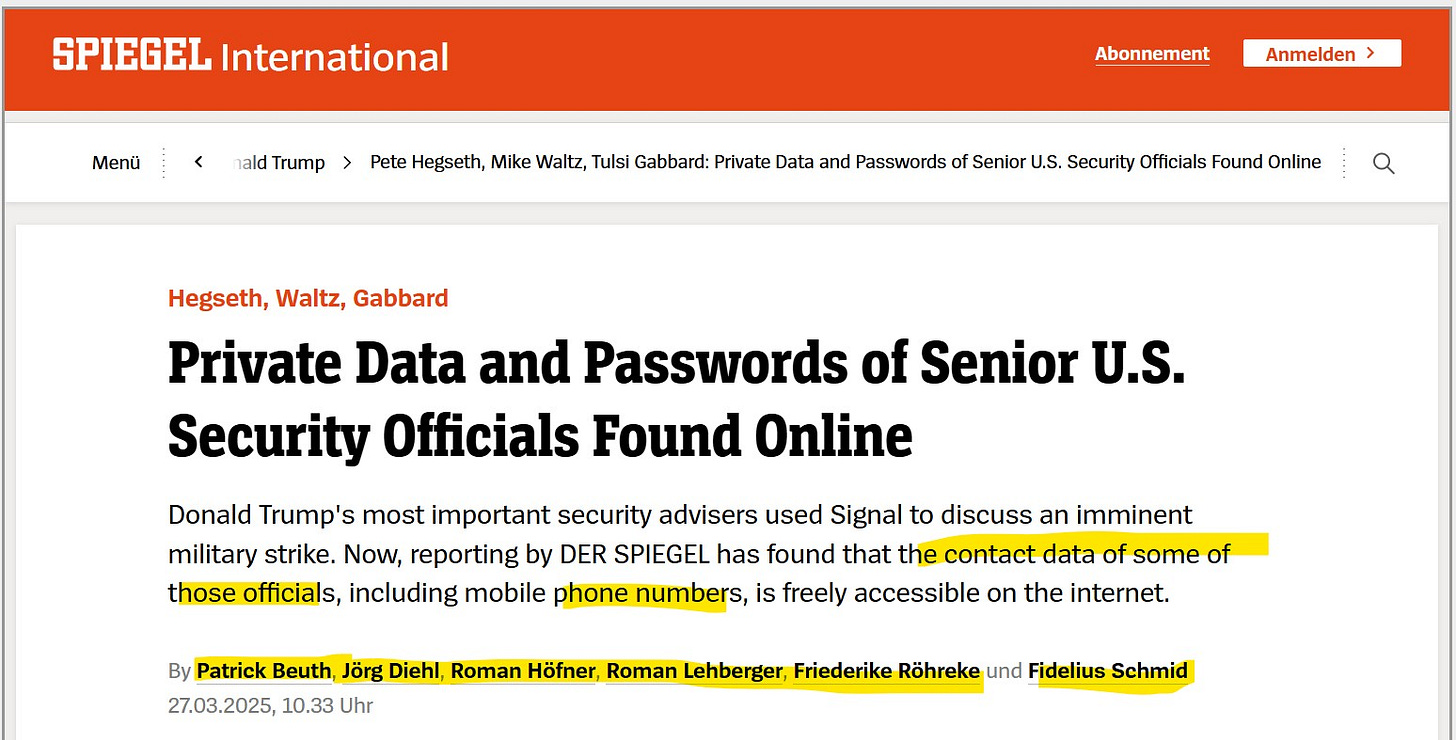 In a “striking revelation”, German news magazine DER SPIEGEL reported that the private data of senior U.S. security officials, including mobile phone numbers, email addresses, and even passwords, were readily accessible online. This disclosure, according to DER SPIEGEL, has raised significant concerns about digital security practices at the highest levels of government.