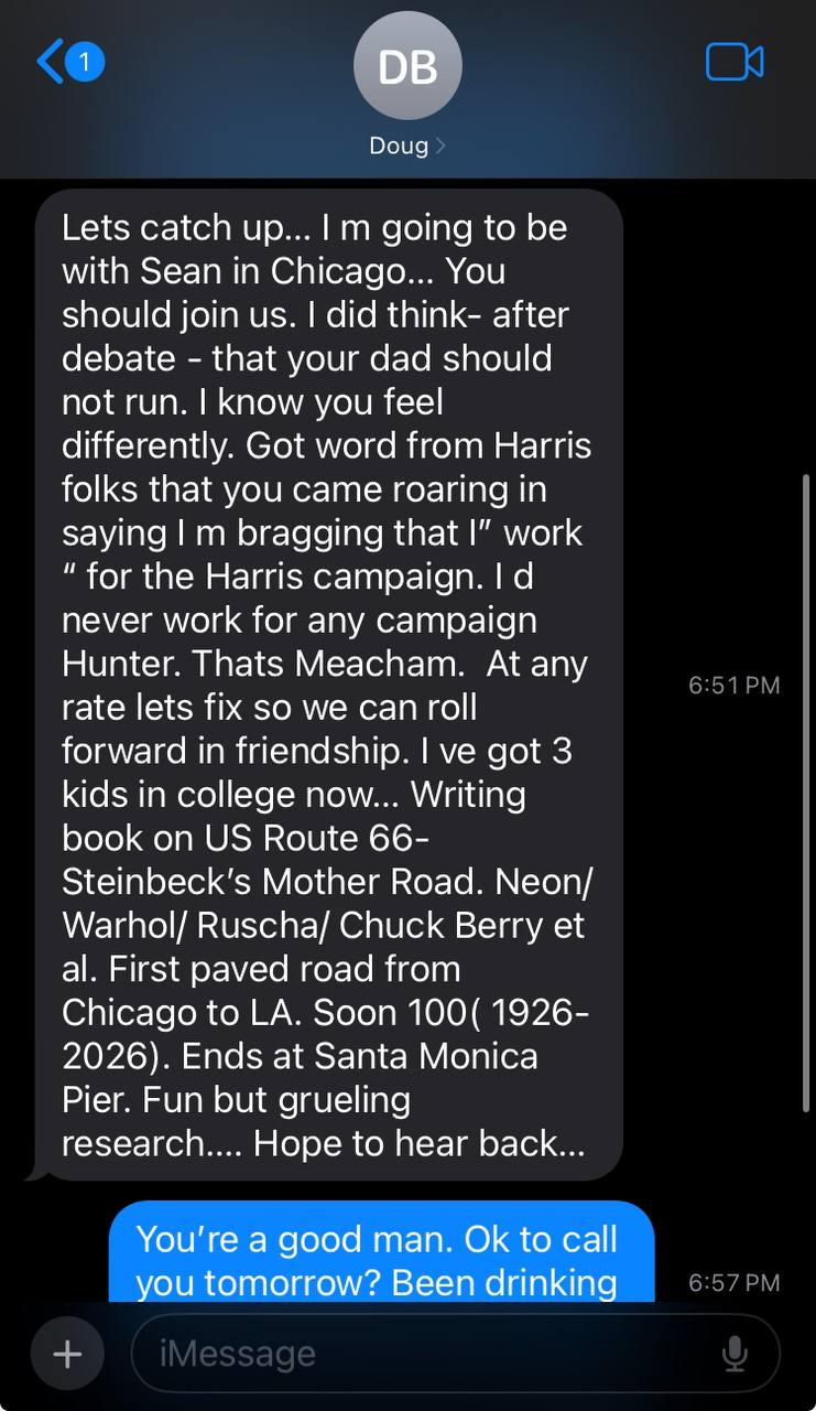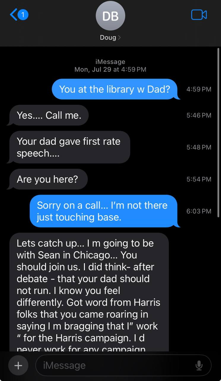 “Are you at the library w dad? —Doug finally saw this, as the chance he needed to “clear the air” on some behind-the-scenes “drama” that he was involved in, within the campaign.