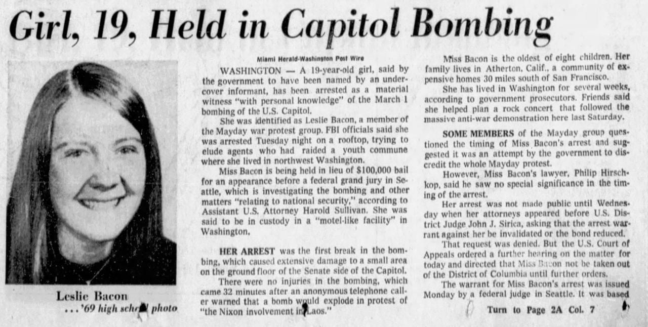 March 1, 1971: The Weather Underground bombed the Senate wing, causing significant damage.