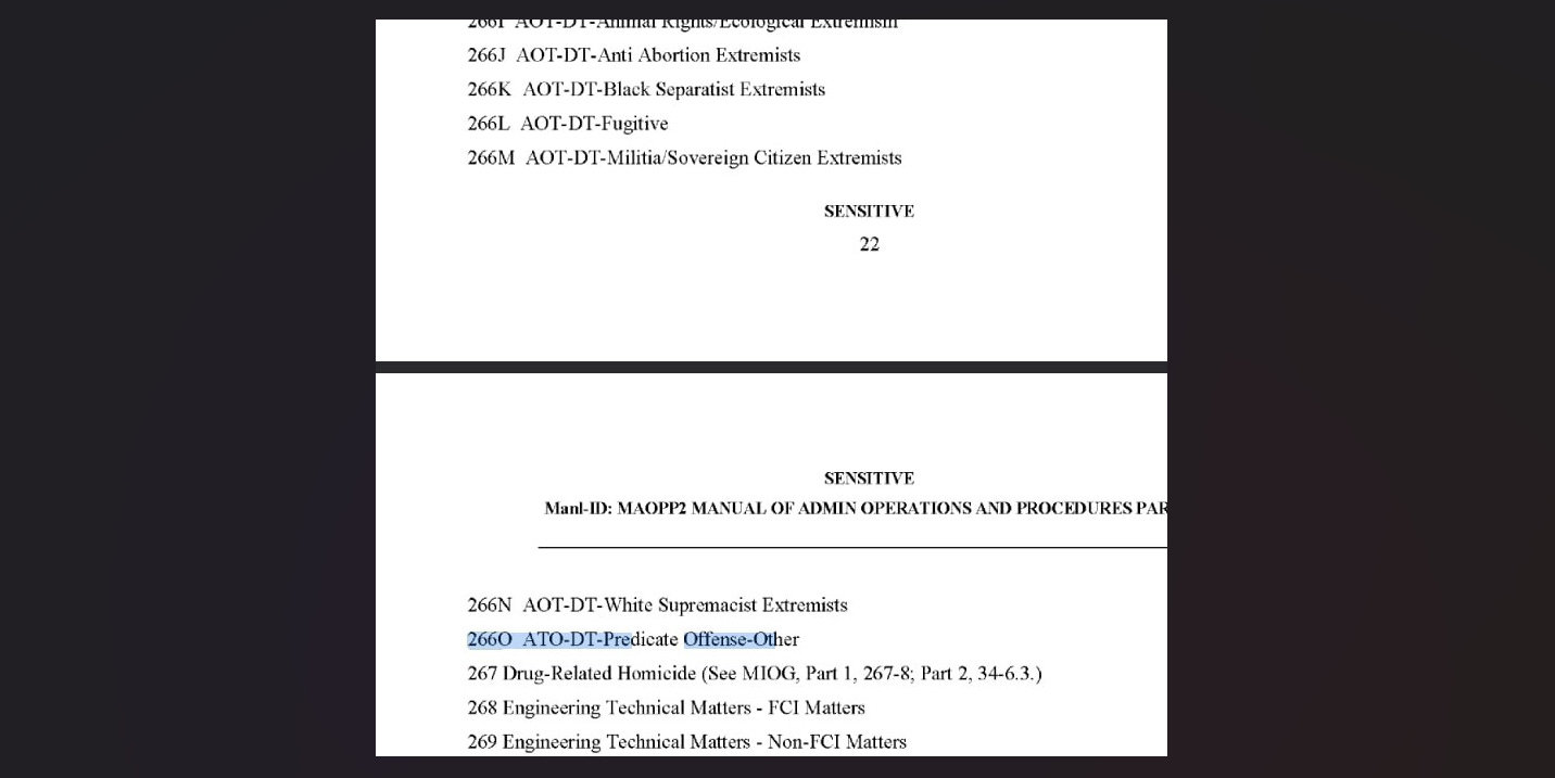 He explained the probable designation that flagged Cranson's file was a 266o: Anti-Government / Anti-Authority Violent Extremists within the 266: Acts of Terrorism in the United States – Domestic Terrorists classification.