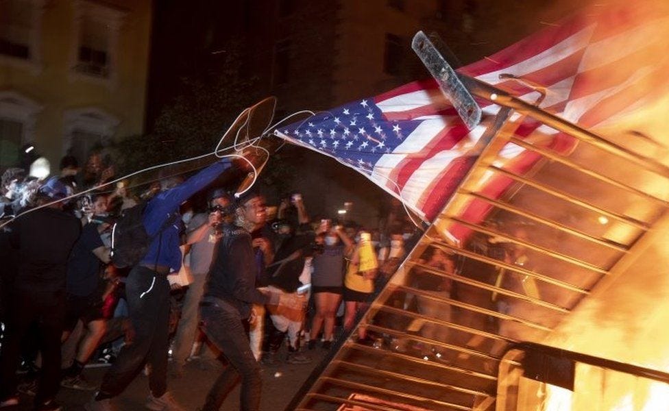 Reports came in of buildings on fire, tear gas deployment, and fireworks as law enforcement pushed protesters back. Despite the widespread violence and arson used, in order to intimidate the public and the government into changing political policy, the vast majority of news organizations reported the events as, "mostly peaceful."