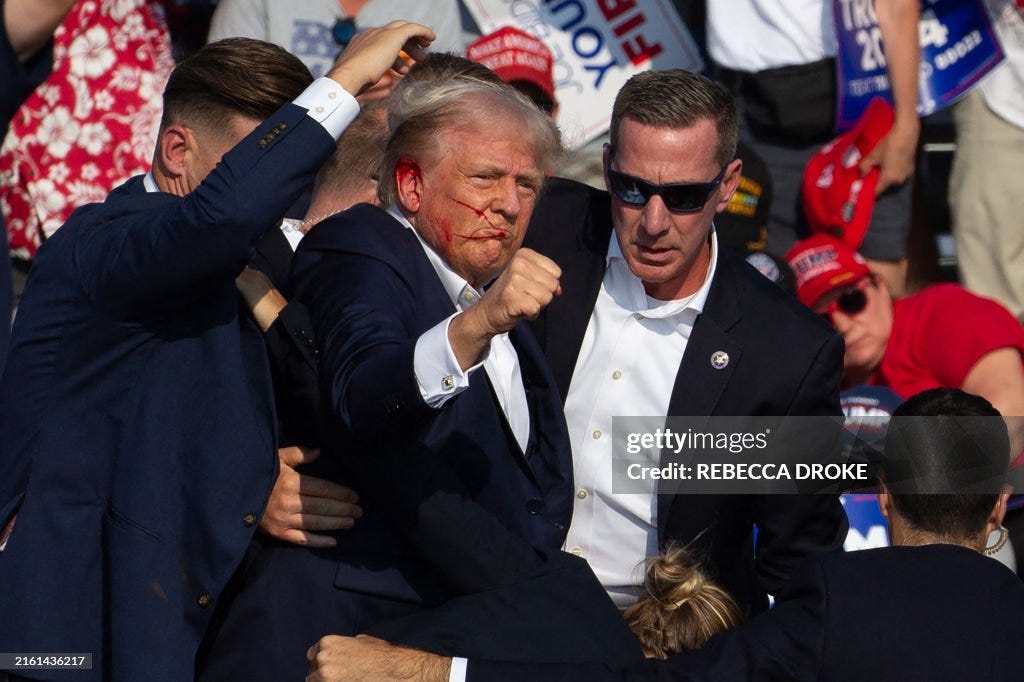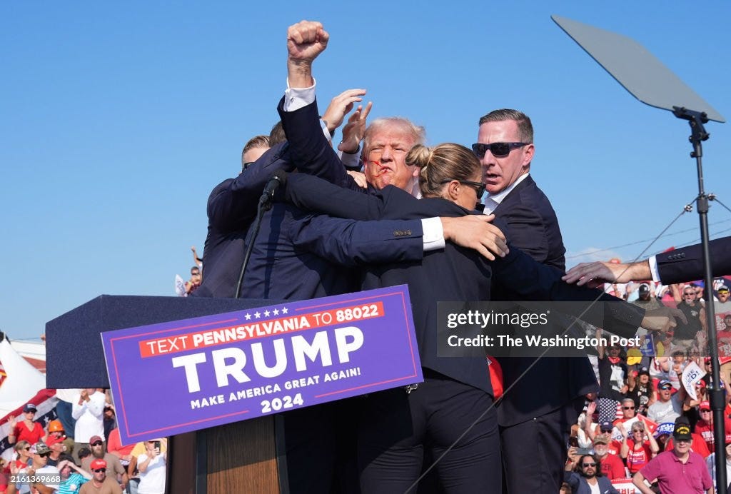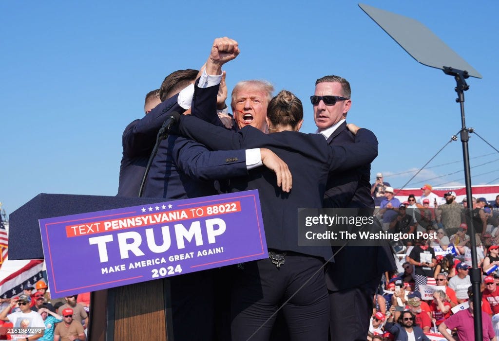 A tsunami of confusion, panic, and fear sweeps throughout the crowd, and in those terrifying moments immediately after the protective detail rushed the stage, President Trump emerged, defiant as ever, bloodied, but ALIVE!