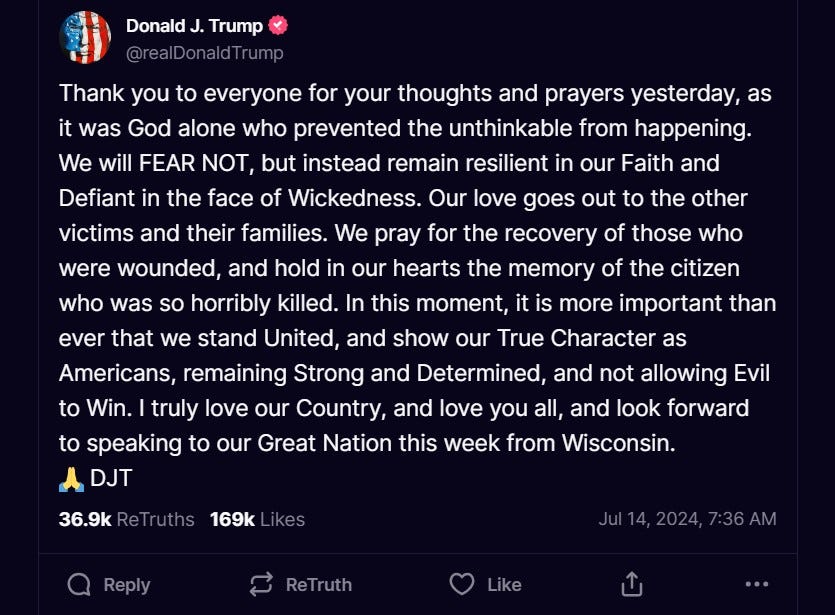 Just like all of you, we too, were still in shock, in the 24 to 48 hours after the attempted assassination of President Donald J. Trump, by the dark forces of evil.