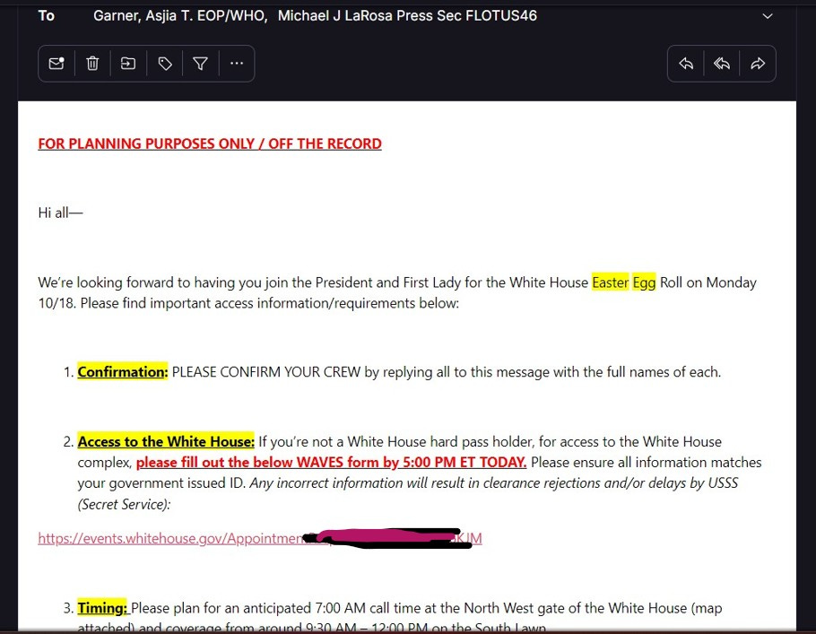 Take this example, for a recent Biden Easter Egg Roll at the White House. An email is sent to an already screened and vetted media list, who are invited to apply for credentials to the event.