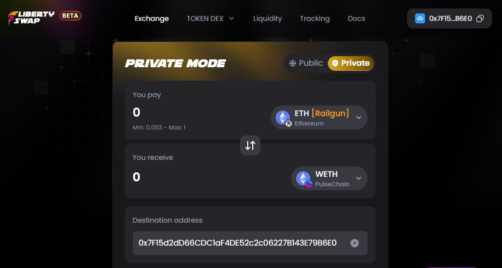 Liberty Swap’s Railgun integration delivers true privacy for cross-chain transfers: shielded balances, hidden senders/receivers/amounts, and blazing-fast execution (often 18-30 seconds). No more exposed trails for front-runners or watchers. Fixed fees. Gasless options. Seamless from ETH, SOL, BSC, BASE, ARB—and straight into PulseChain.